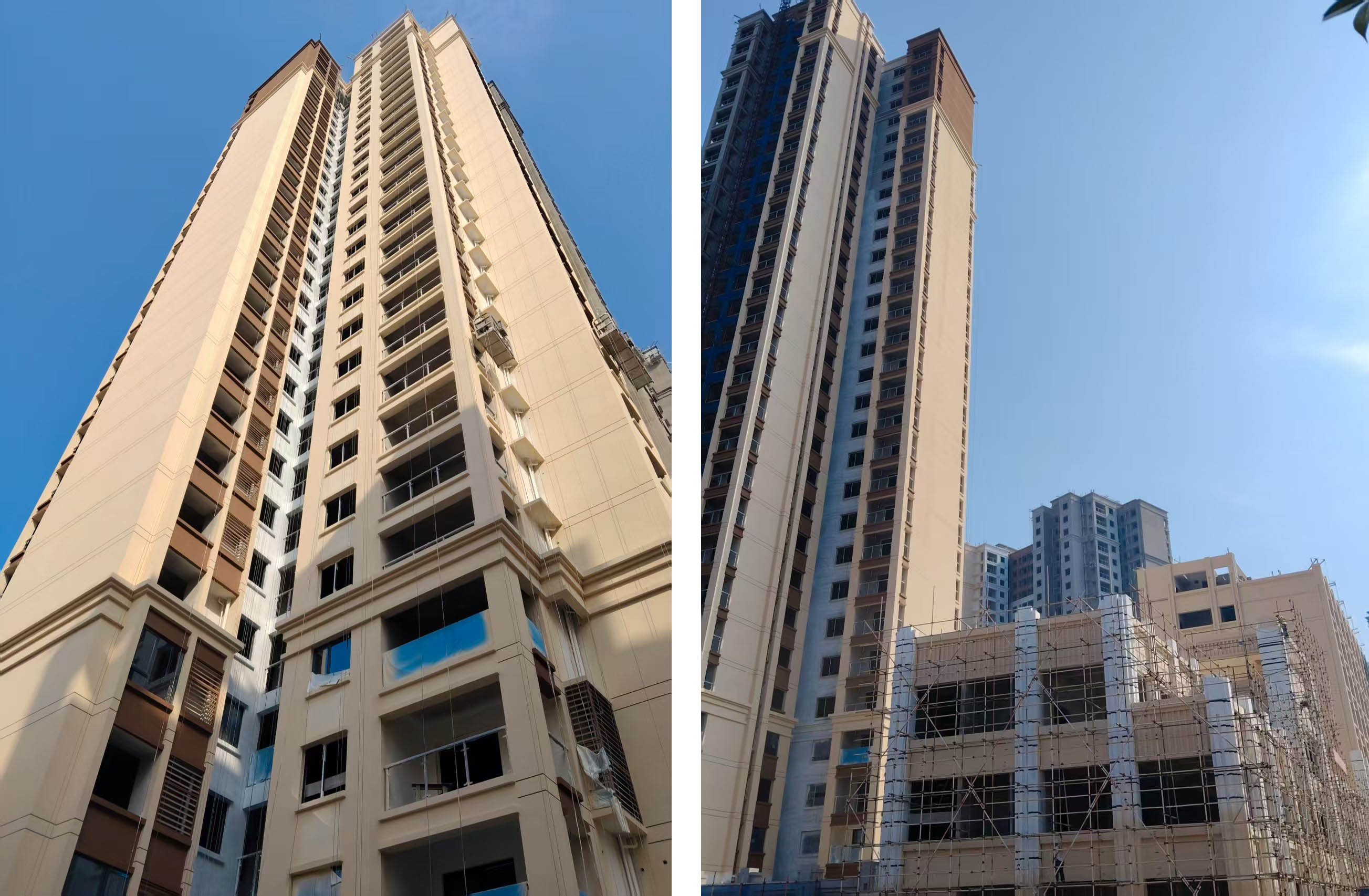 二、3#、13#施工电梯洞口外墙抹灰20%,其他栋号施工电梯防护开始拆除,10号楼施工电梯准备拆除;
